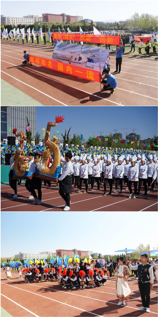 开幕式上,伴随着雄壮有力的《运动员进行曲》,各方队迈着整齐矫健的步伐、喊着铿锵有力的口号,精神抖擞、意气昂扬地走过主席台,接受学院领导和全院师生的检阅。