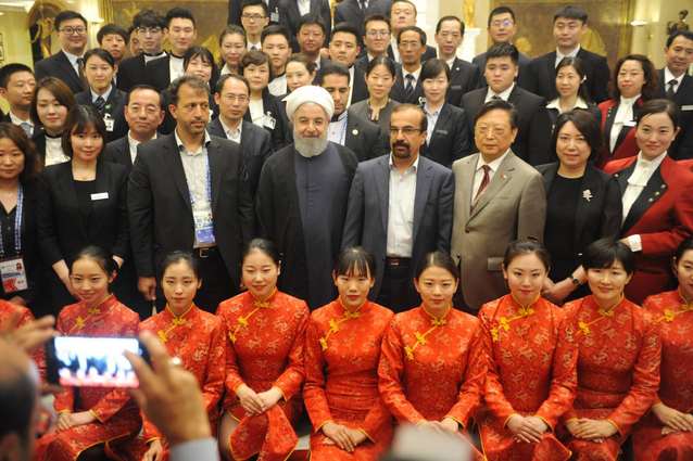 崔梦莹(第一排左二)、庄嘉芳第一排右四、齐高祥(第五排左六与伊朗总统鲁哈尼合影