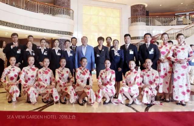 孙凯旋(第一排左三)、伏蓉(第二排右一与哈萨克斯坦总统纳扎尔巴耶夫合影