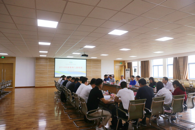 本网讯(组织人事处 李婧)7月4日,学院2018年新教师入职培训开班仪式在办公楼四楼会议室举行。学院党委书记李达,院长姜玉鹏,党委副书记于敏,副院长王建宝,副院长商士海,纪委书记、工会主席姜玲玲,副院长宫恩龙出席开班仪式,组织人事处处长邱心显主持开班仪式。
