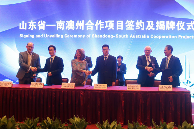 本网讯(国际交流与合作处 邵常恩)718日下午,山东省南澳州合作项目签约及揭牌仪式在山东大厦举行。在山东省副省长任爱荣、澳大利亚南澳州贸易旅游投资部部长李麒伟(David Ridway)、学院党委书记李达的见证下,我院院长姜玉鹏和南澳技术与继续教育学院院长李娜(Alex Reid)签署了姊妹校合作谅解备忘录,这也是此次签约项目中唯一的中澳职业教育项目。