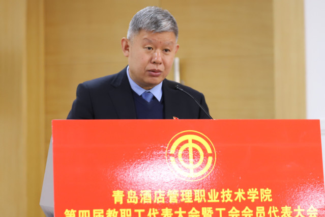 李达致闭幕词,指出本次“双代会”以习近平新时代中国特色社会主义思想为指导,展现了学院民主办学的良好氛围,推进了学院的民主管理、民主监督和民主决策。大会自始至终洋溢着认真、民主、团结、和谐的气氛,是一次成功的大会、胜利的大会。李达要求,各位代表要履行代表职责,发挥好代表作用,带头传达好、宣传好、贯彻好大会精神,带动广大教职员工解放思想,求真务实,开拓进取,团结一心、砥砺奋进、开拓创新、奋勇拼搏,为建设国内一流、国际知名的酒店业全科型职业教育品牌而努力奋斗。