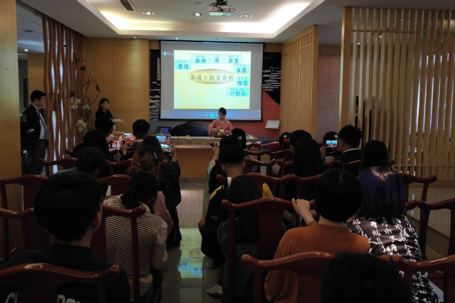 高城宏明向同学们详细讲解了茶道的起源及历史、饮茶程序、茶道礼仪等。水崎真美现场表演了点茶、煮茶、冲茶、献茶等操作步骤以及品茶者的动作要领,为同学们展示了日本的茶文化。茶道表演期间,现场还通过大屏幕播放了多位我院目前在日学习同学的汇报视频。来访期间,高城宏明一行还为下学期准备赴日学习的学生进行了现场面试。