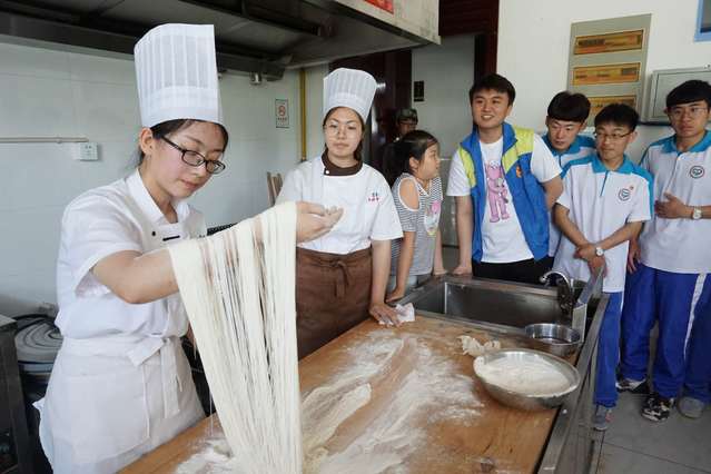 活动合理安排,包罗广泛。课堂上,我院退役军人大学生志愿消防队为师生们讲授了厨具安全使用知识与楼宇火灾自救常识,演示了常见消防器材的使用技巧。全国职业技能大赛参赛选手孙欣洁分享了中国面点文化发展,现场展示了龙须面的制作。中餐烹饪世界锦标赛参赛选手郝永超介绍了食品雕刻常见技法,现场演示了西瓜快速雕刻。活动中,烹饪学院志愿服务队的同学们还指导聋校同学们练习了蒸饺的制作。