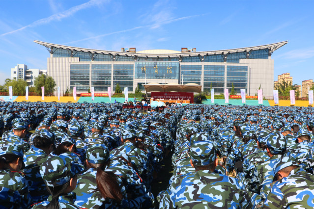 本网讯(党委宣传部 于克晓)一世前程君须记,最是人生起步时。8月31日上午,学院在体育场举行2019级新生开学典礼暨军训动员大会,4900多名学子在美丽的九水东路599号逐梦未来、砥砺前行,开启崭新的人生旅程。