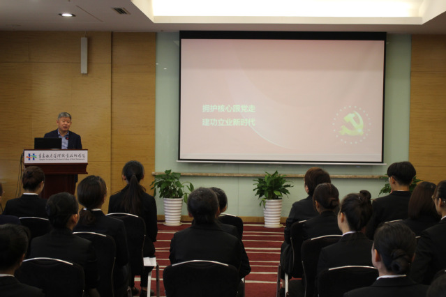本网讯(旅游与酒店管理学院 张妍)10月22日,学院党委书记李达走进2019级酒店管理8班,参与“我与祖国共担当”爱国主义教育主题班会,并为同学们讲授思政课。旅游与酒店管理学院党总支副书记徐莉、辅导员张妍和8班全体同学参加会议。