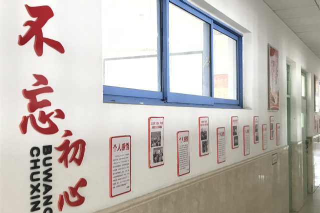 文化长廊分为光辉历程、不忘初心和工作简报三个板块。光辉历程板块记录了中国共产党发展壮大的光辉历程和伟大成就,不忘初心板块将各党支部学习过程中的优秀心得感悟进行分享,工作简报板块作为此次文化长廊的亮点,将各党支部每周在主题教育方面的经验做法及教师学习所得所悟进行了汇编展示。