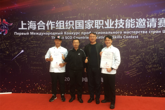 本网讯(国际交流与合作处 烹饪学院)11月10日-11月13日,2019年首届上合组织国家职业技能大赛在威海职业学院举行。学院选派韩国彗田大学留学生金男泰参加烹饪(西餐)国际组赛项,获得大赛一等奖,西餐工艺专业学生韩昊参加烹饪(西餐)国内组赛项,获得大赛二等奖。