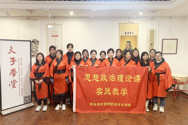 本网讯(思政部 郭玉娟)为充分发挥中华优秀传统文化在学生成长成才过程中的浸润、化育与熏陶作用,丰富思想政治理论课的授课形式与内容,11月28日下午,思政部组织部分学生代表在岛城知名国学馆——夫子学堂开展了以“国学传承,非遗体验”为主题的实践教学活动。