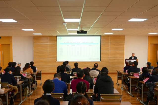 本网讯(旅游与酒店管理学院 尹萍)1月3日,山东酒店业职业教育集团年会暨酒店业发展高峰论坛在我院召开。包括本科院校、高职院校、国际品牌酒店、餐饮企业等在内的68家职教集团成员单位的近100余位嘉宾莅临年会。会议由旅游与酒店管理学院副院长石媚山主持。