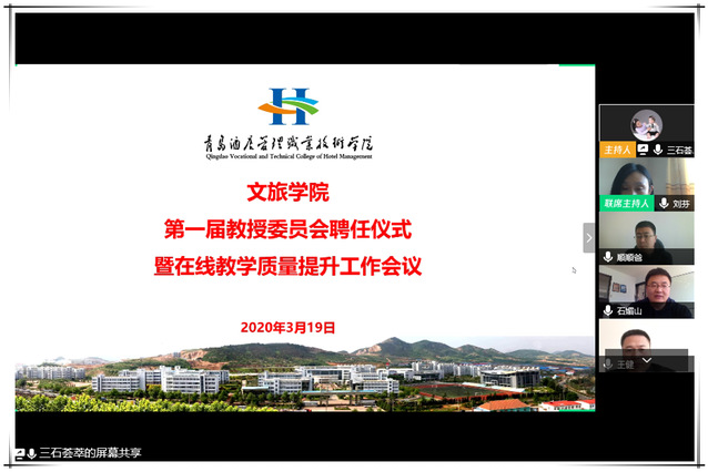 唐文君宣读文旅学院第一届教授委员会名单,首届教授委员会主任委员刘迎华教授宣读了《文旅学院教授委员会章程》。会议还邀请全国花、田超、康传德三位老师做了在线教学典型案例分享,就在线教学质量提升进行了总结。