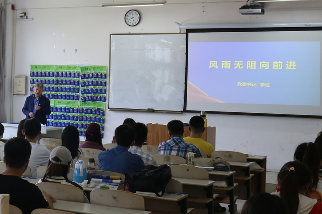 本网讯(酒店管理学院 文旅学院)5月26日学校迎来首批返校学生。5月27日上午,学院组织开展2020年春季学期开学第一课活动,党委书记李达以“风雨无阻向前进”为题,为首批返校学生授课。活动由副院长宫恩龙主持。