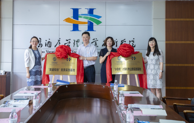 为推进双方党建共建工作,中国移动李沧分公司与信息工程技术学院互建“‘党建和创’党员实践基地”和“‘小白杨’计算机专业群实践基地”,王鑫、金志刚和学院纪委书记姜玲玲、中国移动李沧分公司党支部宣传兼群工委员李秀艳共同为两个基地揭牌。
