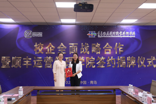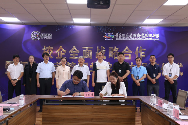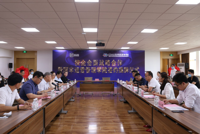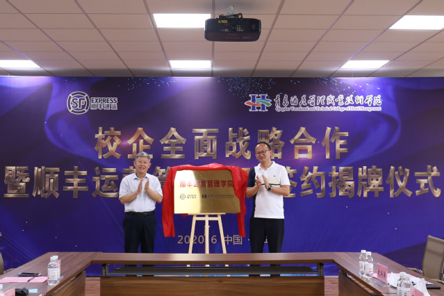 青岛顺丰速运有限公司各部门负责人,工商管理学院现代商贸物流专业群各专业负责人及部分学生代表等相关人员参加签约揭牌仪式。