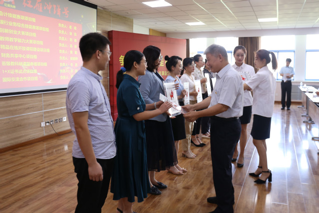 组织人事处处长邱心显、团委书记李柯、科研处副处长焦念涛、教务处副处长王超分别为会计学院行政服务、学生管理和教育教学“红雁先锋岗”授牌。