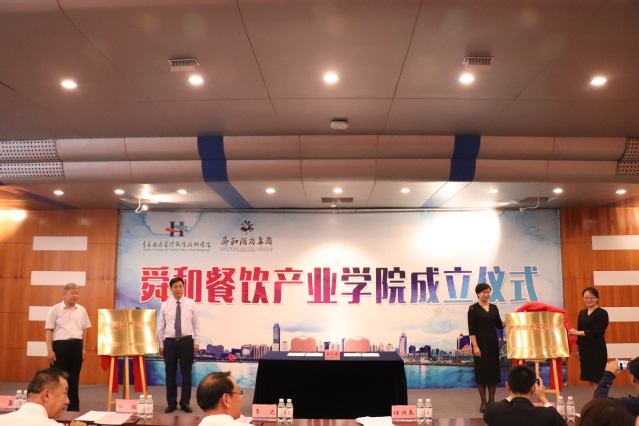 本网讯(烹饪学院 李军)9月17日,学院与山东舜和酒店集团签约成立舜和餐饮产业学院,揭牌仪式在学术报告厅举行。
