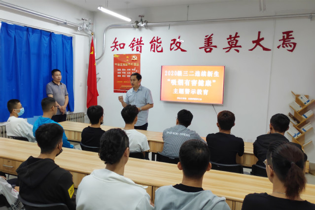 学生工作处处长赵明富对“无烟校园”的管理规定做了说明,对违纪警示教育室的建设、运行和前期教育效果进行了反馈,希望通过本次警示教育学习,加强学生的安全、自律意识,希望同学们学会珍爱自己的生命和健康,养成良好的行为习惯,维护健康、无烟的校园环境。文旅学院党总支书记王健对同学们提出具体禁烟要求,希望同学们养成良好的作息生活习惯,保证身心健康,以崭新面貌迎接大学生活。