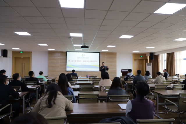 张宗国宣读新一届专业负责人、教研室主任聘任名单。姜玉鹏和张宗国共同为新聘任的45名专业负责人、教研室主任颁发聘书。民宿管理与运营专业负责人郭贵荣代表新聘任专业负责人作表态发言。