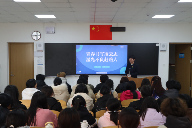 中国石油大学(华东)材料科学与工程学院团委书记王佳为烹饪学院2023级新生开展《青春铸就梦想 理想点亮中国》专题报告,梳理中国共产党百年发展历程,宣讲青年党员投身中国革命、建设、改革的鲜活事迹,引导青年大学生与青年革命先辈实现“青春邂逅”,坚定理想信念,涵养家国情怀。