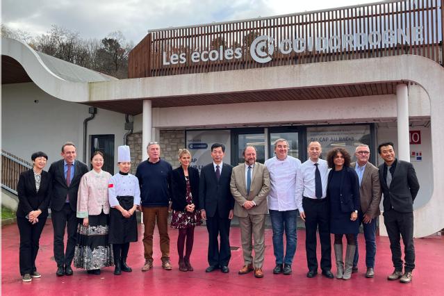 在法国萨维纳国际高等酒店管理学院和佩里格酒店学院,双方学校进行了座谈交流。座谈中,学校代表团介绍了学校基本情况,回顾了中法学校发展历程;法国学校积极评价双方合作取得的丰硕成果。中法学校代表就推进学生联合培养项目、假期研学交流项目、教师技能文化研修项目,以及在现代服务业方面的科研合作等项目进行深度研讨。座谈后,中法学校代表共同见证签署合作协议,举行“万象城awc官网登录入口茶艺工坊”挂牌仪式。为宣传和推广中国传统技艺,讲好中国故事,学校代表团开展了中式面点和茶艺技能展演活动,获得了法国学校师生的高度评价。