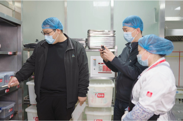 严格落实“日管控、周排查、月调度”的工作制度,对食堂生产、加工、供餐等环节可能存在的风险点进行了深入自查自纠。组织餐厅员工再学《食堂管理制度汇编》,对“互联网+明厨亮灶”监控设备进行普查,确保食材采购到加工出菜的各个环节纳入监控体系。严格管控食品原材料采购,严格落实索证索票制度,对库存原材料对照票据进行普查。餐具清洗规范按照“一洗、二刷、三冲、四消毒、五保洁”操作步骤,定期组织餐饮具ATP检测。