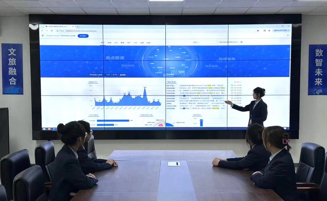 此外,学校在平台的基础上建成呼叫中心和数据大屏,建成了由30余个实训系统组成的数字文旅虚仿教学实训平台。实训平台提升了学生的数字化素养,培养了学生数字化应用能力。学校还与上海金棕榈共建旅游大数据分析职业技能等级证书试点,与山东文旅云合作共同开发旅游大数据人才培养体系,设立旅游大数据分析师新型现代学徒制班……依托专业进行数字化升级,建设数字人才培养高地。