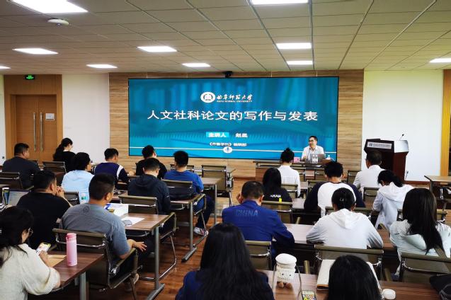 讲座中,赵昆教授从人文社科论文的界定与类型、构成与写作、投稿与发表等方面展开,就论文选题、摘要凝炼、论证说理等进行了详细讲解,指出论文选题要把握价值性、创新性和适宜性原则,学会“小题大做”。赵教授结合自身多年的期刊编辑工作经验,细致分析了期刊论文投稿面临的普遍问题,并就如何提高论文投稿命中率提出了建议。