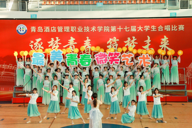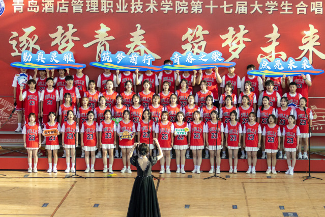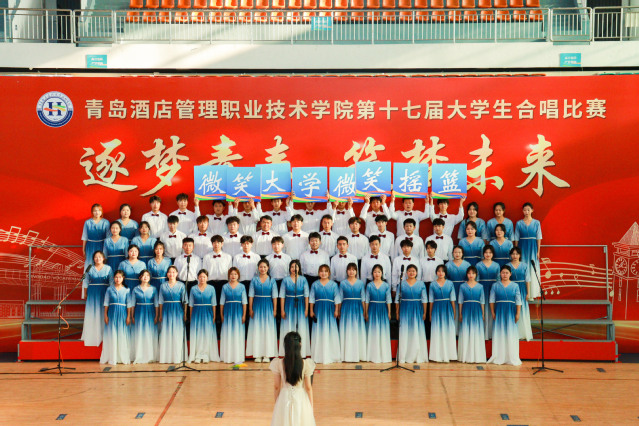 本网讯(团委 孙梦男)逐梦青春,筑梦未来。6月13日下午,学校第十七届大学生合唱比赛在体育馆举行,学校副校长宫恩龙参加活动。活动邀请李沧团区委副书记赵文苑,青岛科技大学音乐系副主任、校团委兼职副书记王邑,学校教师王劭铭、赵旭担任评委。