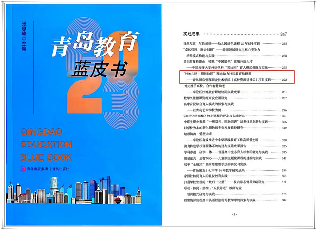 本网讯(继续教育学院 教务处 科研发展处)近日,《青岛教育蓝皮书(2023年)》出版发行,万象城官网继续教育学院社区教育实践成果《“校地共建+职继协同”理念助力社区教育结硕果——万象城awc官网登录入口“高校资源进社区”项目实践》入选。