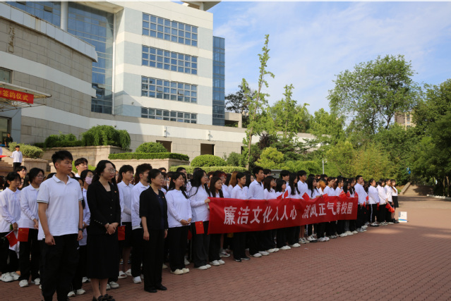 6月17日,艺术学院举行“廉洁文化入人心 清风正气满校园”主题升旗仪式。仪式中,学生代表在国旗下朗诵《廉洁之颂》、宣读《廉洁倡议书》,激励同学们坚定不移听党话、跟党走,学习廉洁文化、怀揣廉洁品德、实践廉洁行为、养成廉洁作风,将清正廉洁内化于心、外化于行,在成长的“拔节孕穗期”扣好廉洁自律“第一扣”、系好廉洁自律“安全带”。