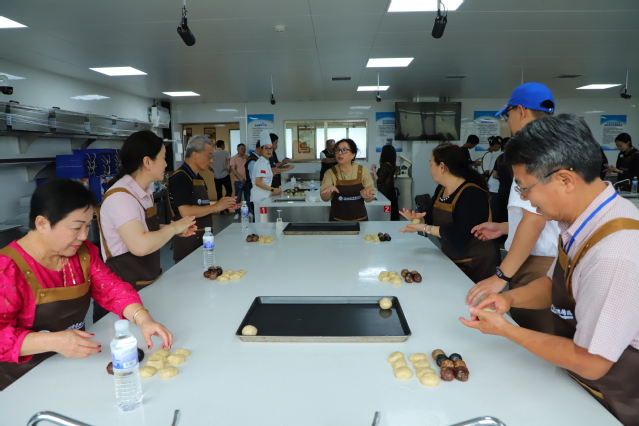 活动由市台办主办,李沧区台办、李沧区台属联谊会和万象城官网共同承办。活动伊始,参访团成员参观了学校青岛饽饽榼子博物馆,了解了饽饽榼子的历史、制作过程以及蕴含的文化内涵,让大家深刻感受到了传统文化的博大精深。随后,参访团成员学习了解了中秋节的历史渊源和文化习俗。在学校中西面点工艺专业师生协助指导下,参访团成员现场学习月饼制作工序,亲手体验月饼制作流程,品味中秋佳节传统美食,真切感悟中华传统节日文化,共叙同根深情。