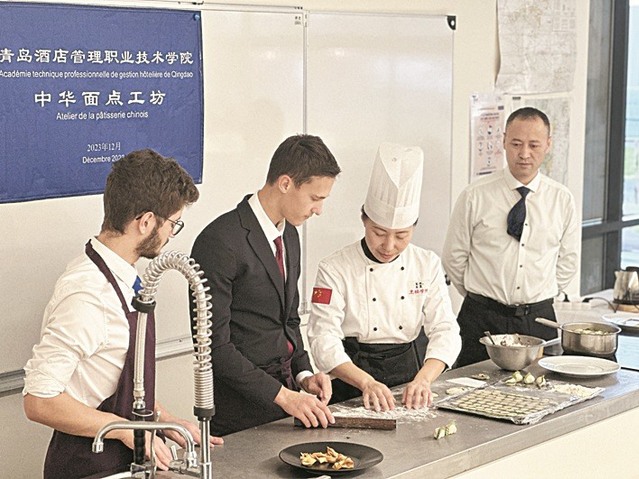 实施“味来鲁菜”职教出海计划,以“校—企、校—校、政—校—企”三类合作方式,输出中餐人才培养模式。招收、招待留学生、交换生、文化体验团累计650余人次;“工坊技艺技能”课程体系被韩国慧田大学和加拿大卡纳多学院采用;教师赴联合国教科文组织进行“中餐文化”主旨演讲;在韩国、印尼、加拿大成立了三所海外“中餐鲁菜学院”,传播中国烹饪文化。“烹饪学院是一所五代匠人积累与传承的学院,他们是大国工匠、是职教名师,融于血脉的教育家精神是经得起时间冲刷和洗礼的。”李文武说。