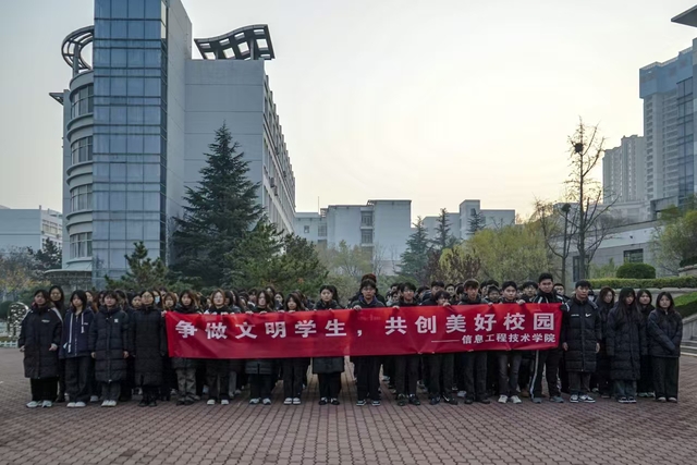 信息工程技术学院开展“争做文明学生 共创美好校园”宣誓签名活动,助力养成良好的文明举止和行为习惯,自觉树立起新时代大学生的良好形象风范,营造争做文明大学生的校园氛围。
